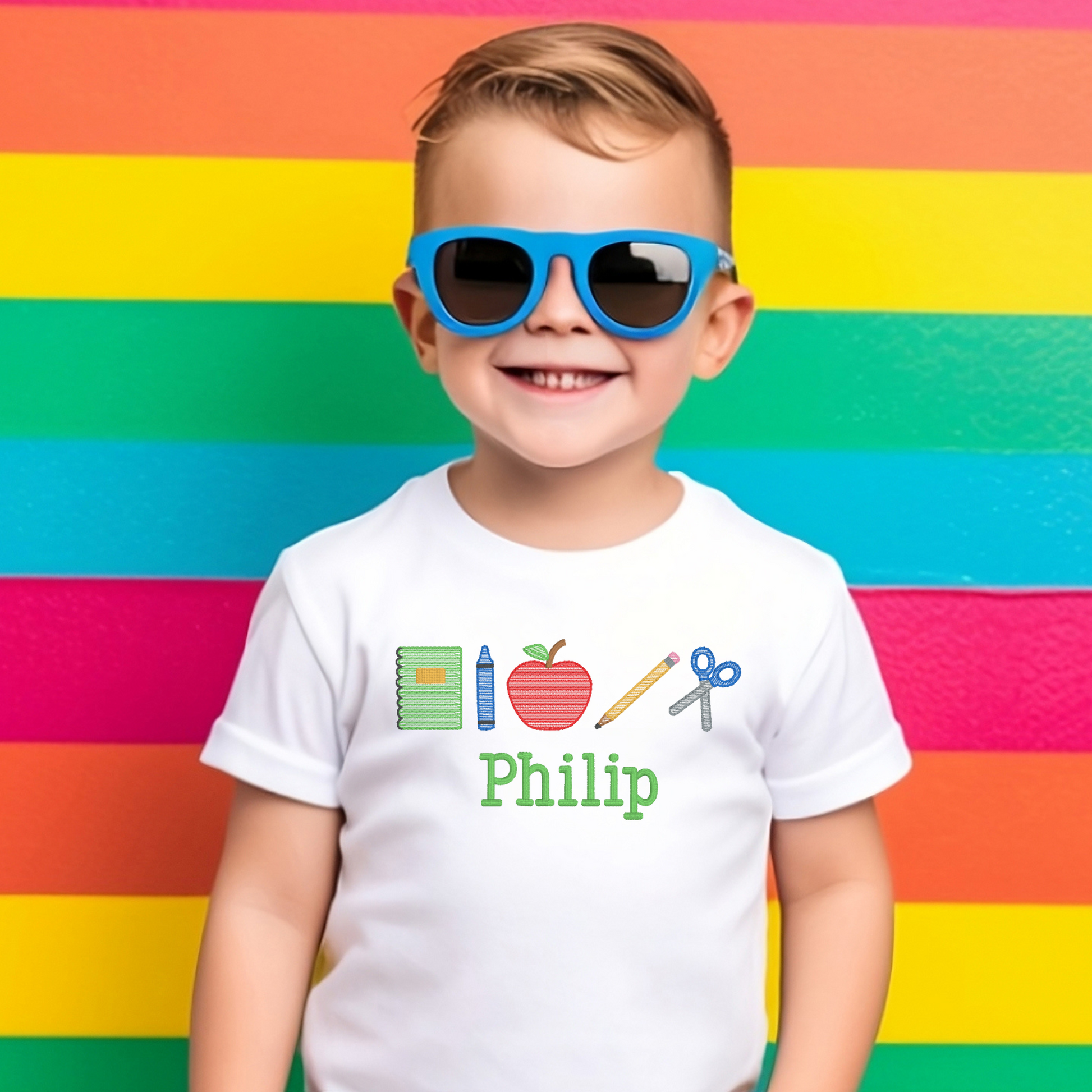 Back to School Shirt – Embroidered School Supply Tee for Kids
