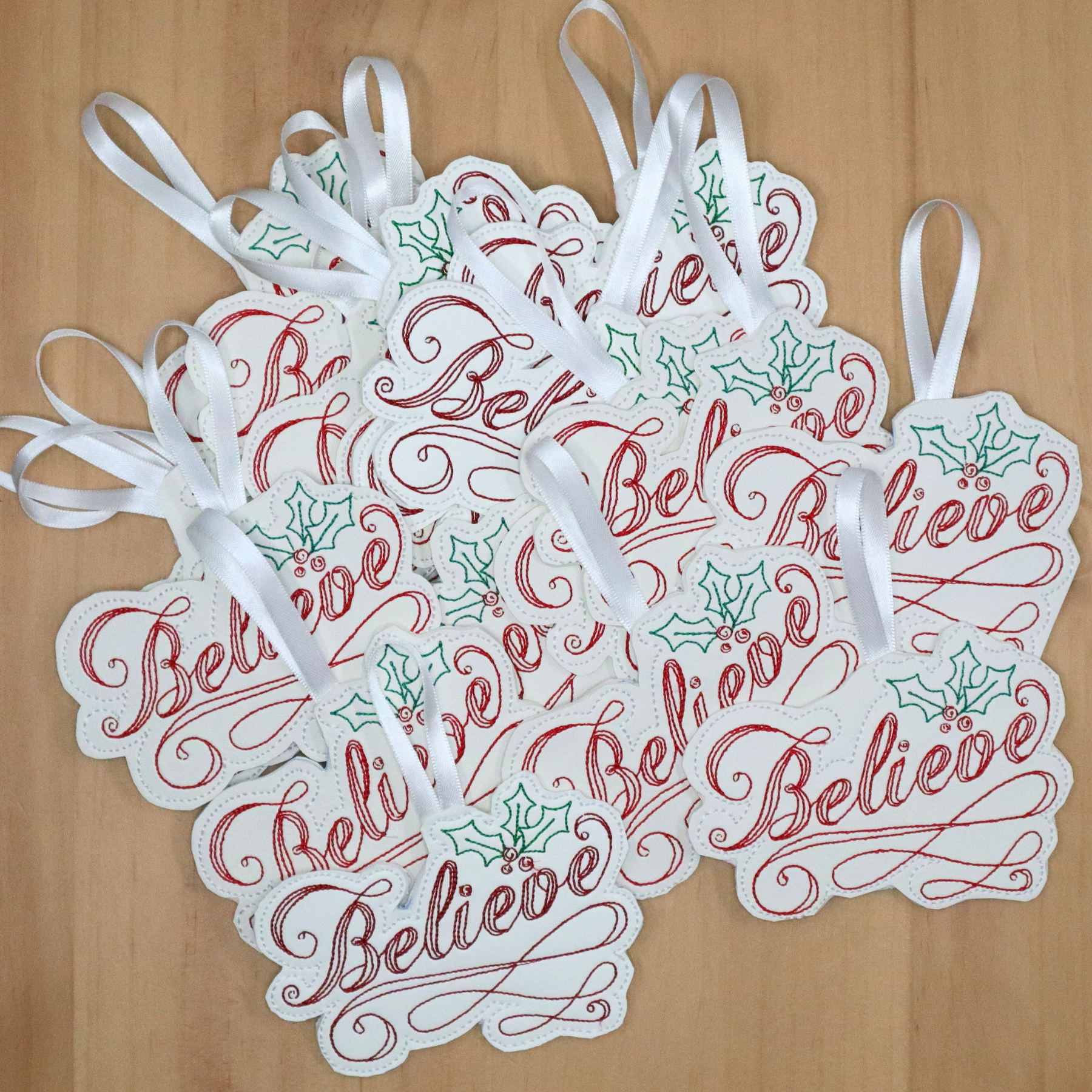 Add a little handmade charm to your tree with this machine-embroidered ornament. Each one is stitched on durable marine vinyl for great structure and long-lasting color, and it’s finished with a coordinating ribbon for easy hanging.