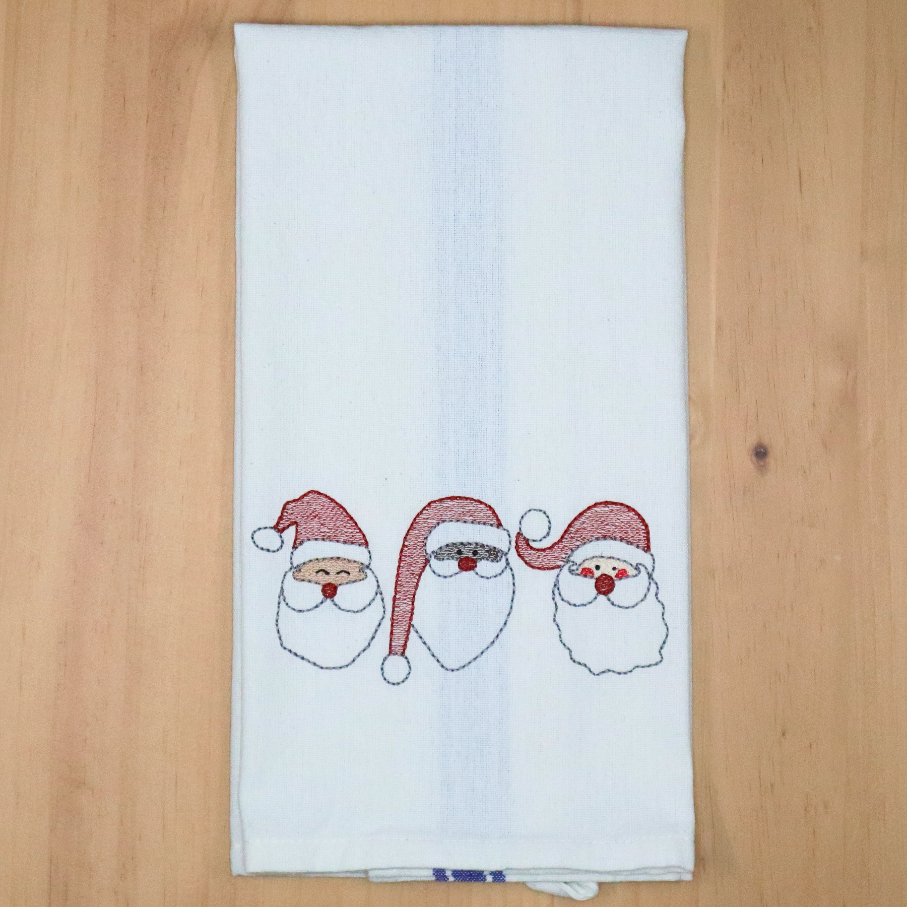 Santa Bean Stitch Trio, Embroidered Hand Towel, Multicultural
