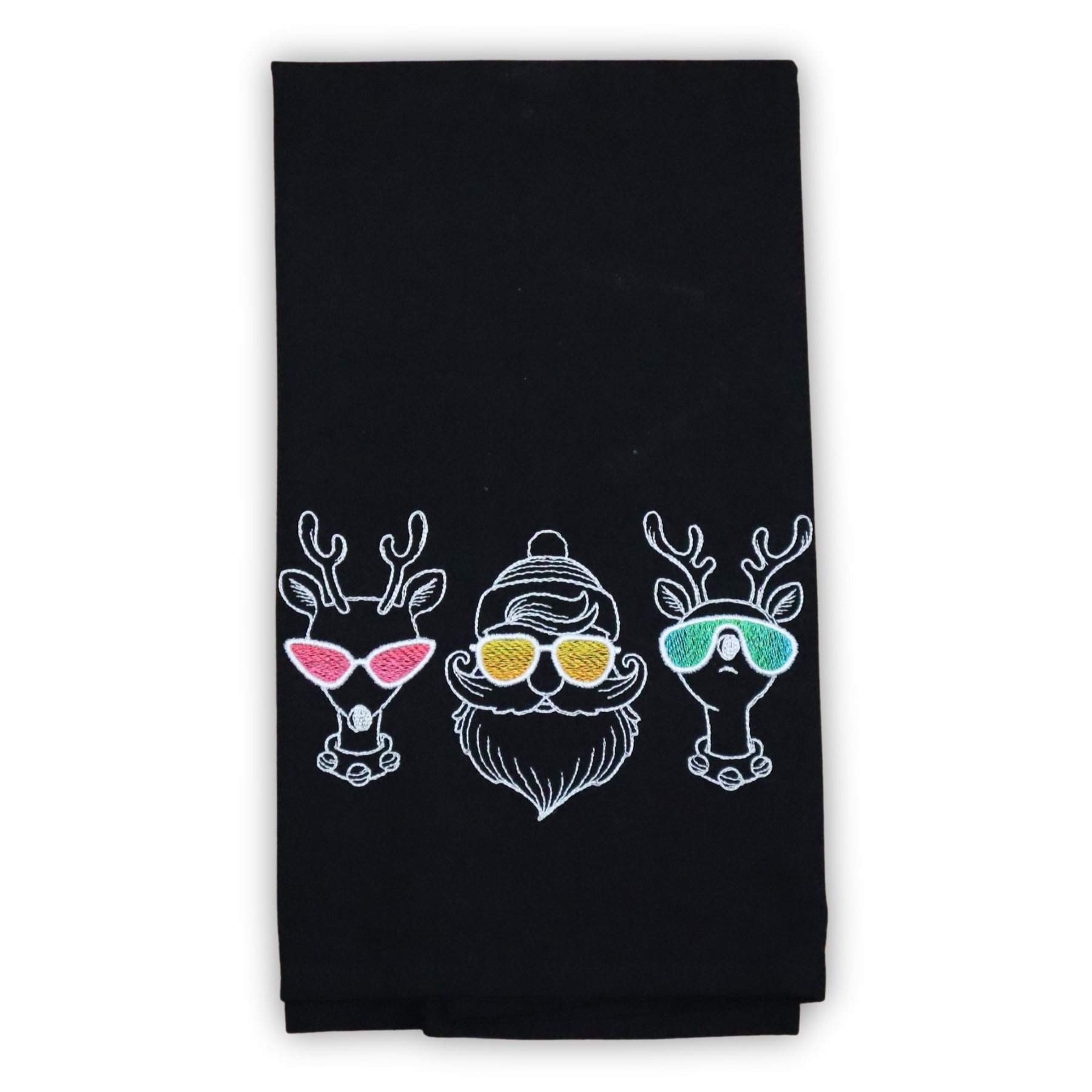 Santa Cool Guys Trio, Rudolph, Sunglasses, Embroidered Hand towel
